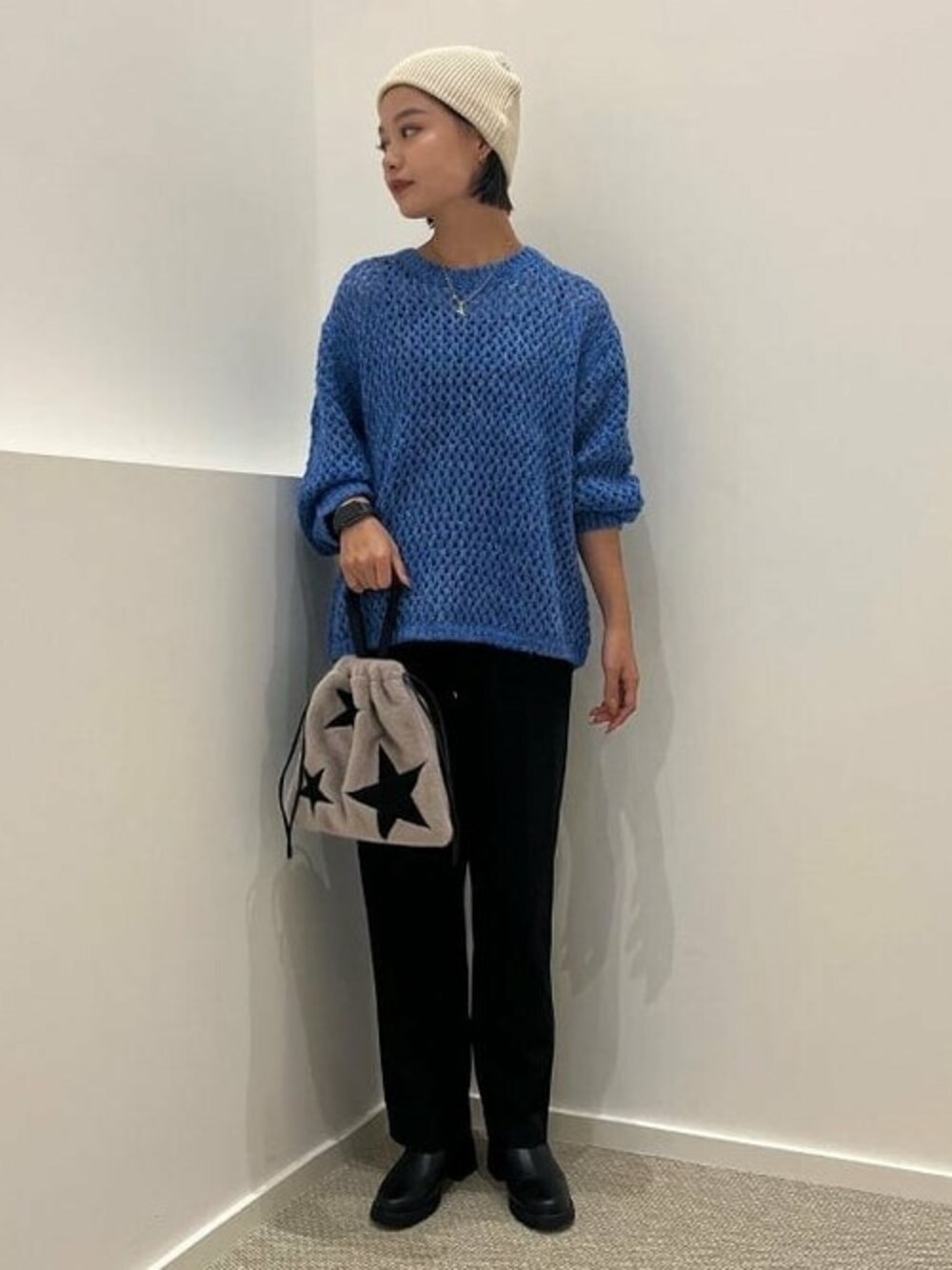 ニットの抜け感が可愛い編みニット。インナーはキャミなどと合わせ、少し肌見せで着るのが個人的なおすすめです◎新作のニット帽も◎ ビームス 仙台 / 熊谷 芳乃