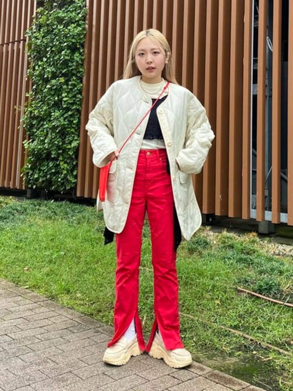 キルティングブルゾンは秋冬のムードが高まるOFF WHITEをチョイスしました。ゆったりとしたサイズ感なのでいつもよりワンサイズ下でも良いかもしれません!スマホショルダーは新色のREDです!コーディネートの差し色になります♡ ビームス 武蔵小杉 / haruꪔ͈̮