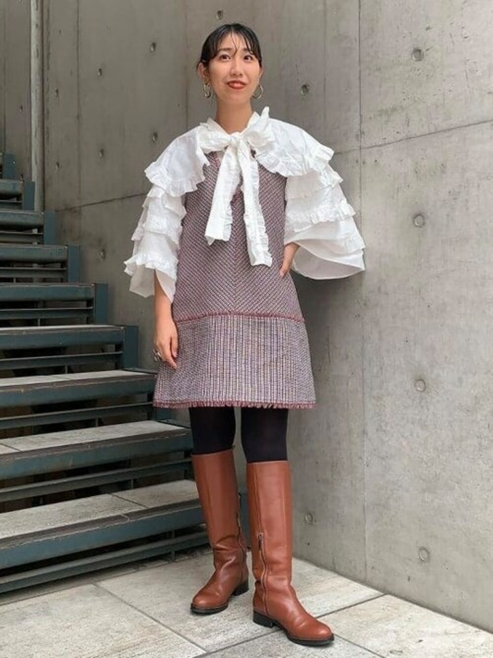 Ray BEAMS(BEAMS WOMEN)のワンピース「Ray BEAMS / ツイード Vネック ノースリーブ ワンピース」を使ったコーディネート