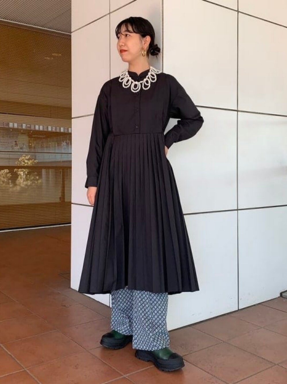 Ray BEAMS(BEAMS WOMEN)のワンピース「Ray BEAMS / プリーツ キリカエ バンドカラー ワンピース」を使ったコーディネート