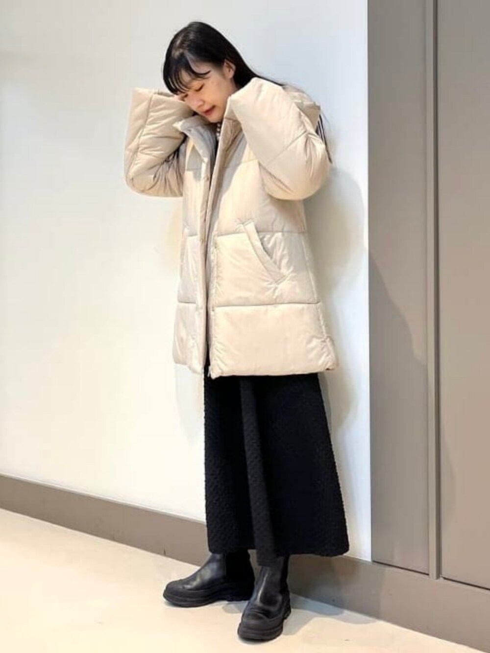 【きれめコーデ】今日は中綿のダウンをチョイス!とっても軽くてあたたきあ。すこしおしりにかけて長くなっているので横から見た姿が綺麗なんです! Ray BEAMS / hazuki