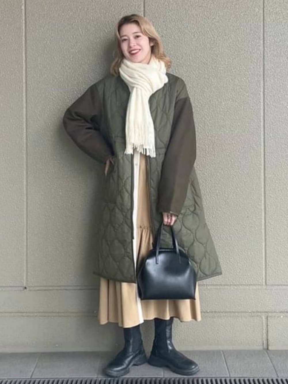 【寒くなってきましたね♡】最近入荷してきたマフラーが可愛くて、、!キルティングとの組み合わせが最強です!甘めなスタイルなので小物は黒でまとめました☺︎! ビームス 梅田 / フクイ サキコ
