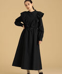 ブラックのワンピースはウエストゴムなのでとても着やすい◎ ウエストに紐も付いているので1枚で着用するときはキュッと絞ってあげても可愛いです♡ ビームス ストリート 横浜 / ミズノ ミユ