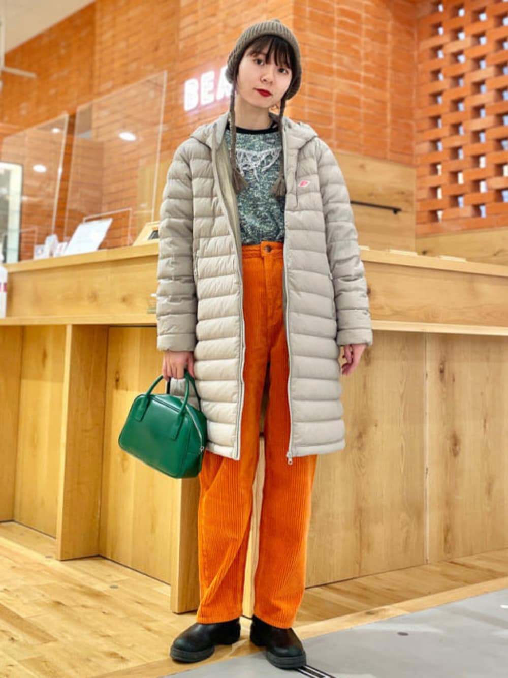 【新入荷ダウン!色々と丁度良い◎】軽い着心地なのにしっかり暖かい、でもボリュームが出ず、コンパクトなので嵩張らない、まさに"丁度良い"ダウンが入荷しました〜!サイズは162cmでMサイズ着用、やや薄手のニット合わせで少しゆとりがあるくらいです!ちょっとの時間着ているだけでもポカポカ〜!明るいグレージュは、女性らしくて肌馴染みの良いカラーリング。お洋服の色が暗くなりがちな今シーズンにオススメな華やかカラーです♪ ビームス みなとみらい / デグチ アツミ
