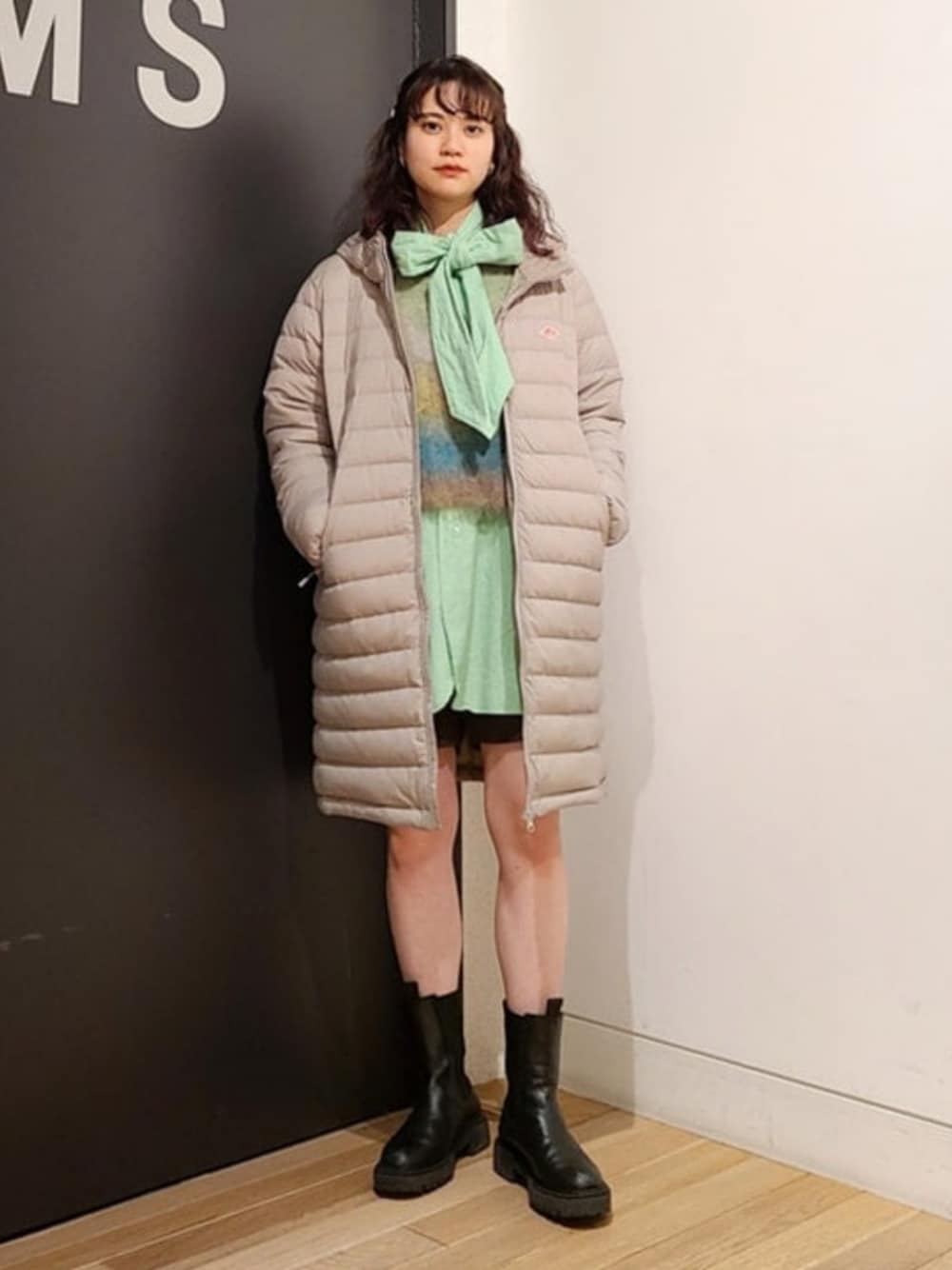 【ダウンをワンピース気分で!】今時期はさっとライトアウターとして、真冬はコートのインナーダウンとして使える<DANTON(ダントン)>のダウンコート。中にブラウスとニットを着込んでいるので今回はサイズMを着用してます^^まだ少し余裕があるのでもっと厚手のニットでもいけそうです。流行に左右されないベーシックなダウンは1枚持っておいて損はナシですよ!リボンタイはアウターからきちんと出して見せるのがポイントです◎ ビームス 町田 / saori KATO