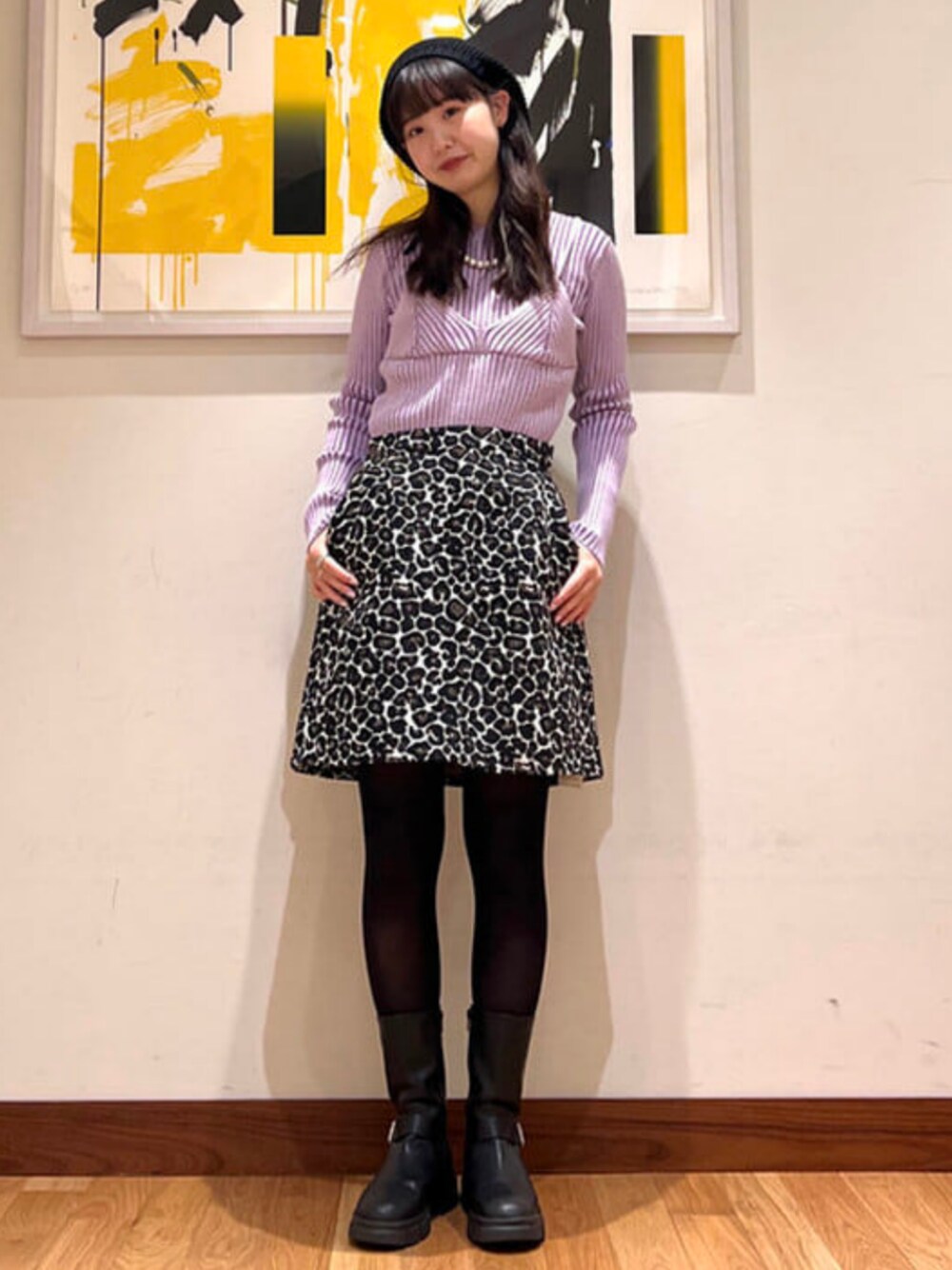 Ray BEAMS(BEAMS WOMEN)のスカート「Ray BEAMS / ヒョウ柄 ジャカード ミニスカート」を使ったコーディネート