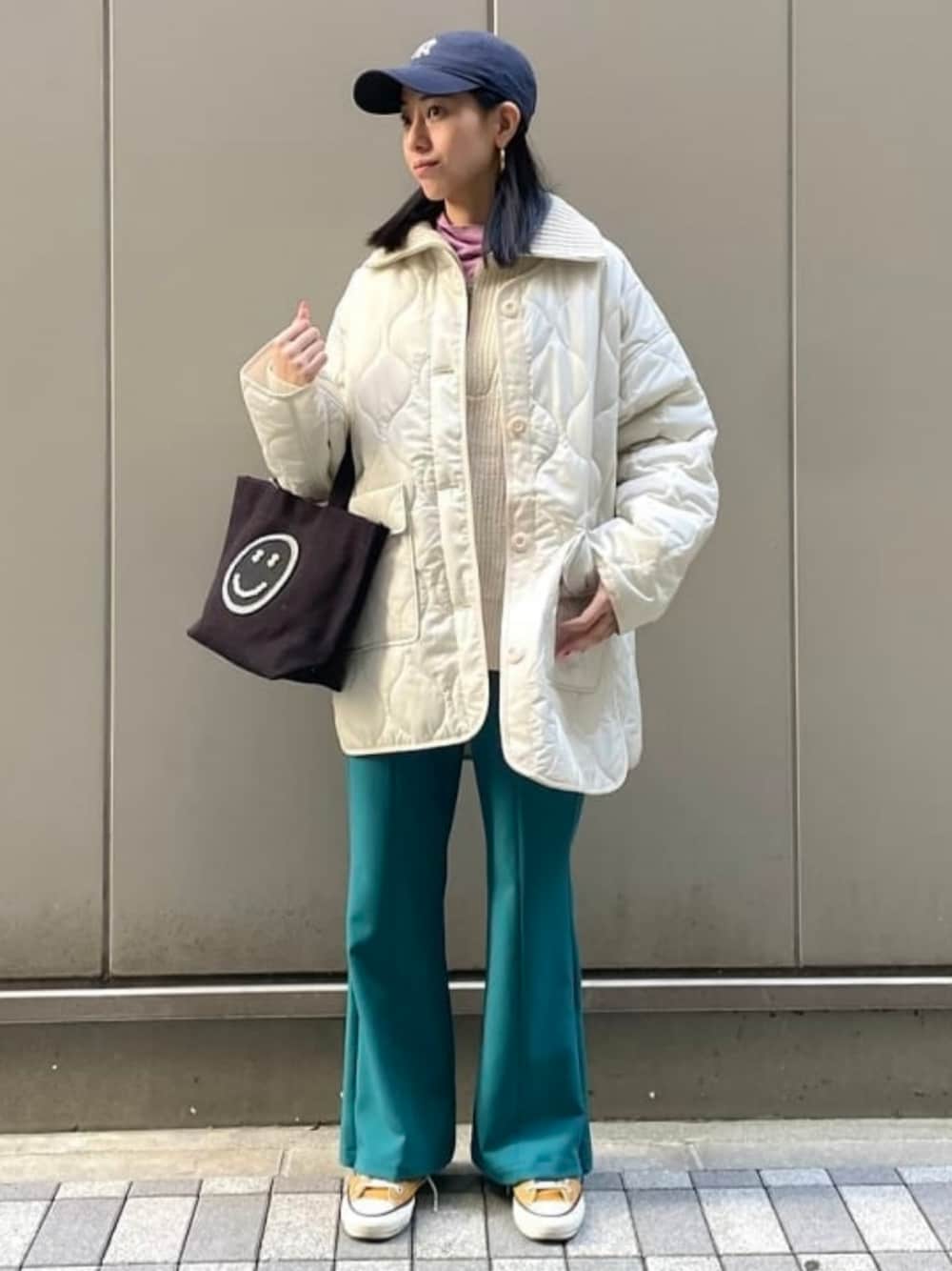 お休み楽ちんスタイルです!アウターは軽くゆったりしているので、ニットや厚手のトップスを着てもリラックスして着れます☆また、パンツは形が綺麗で、太さも余裕はあるのですが、太すぎない為大きめのトップスとも相性抜群です♡しかもウエストはゴムなので楽ちんですよ! ビームス 銀座 / えみり