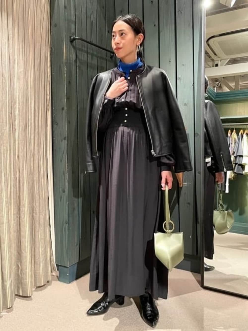 シルエットがとても綺麗なワンピースです。ウエストのリブは女性らしさを出してくれ、また、少し上にあるのでウエストアップ効果もございます♡ ビームス 銀座 / えみり