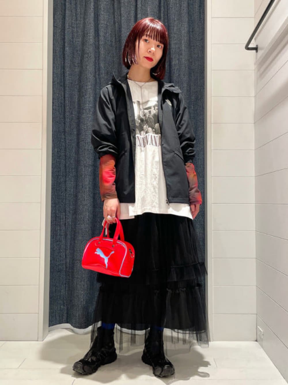 【スポーティー×ドレッシー】色々な機能を兼ね備えていて、アウトドアにもピッタリな〈THE NORTH FACE〉のジャケットに、あえてチュールスカートを合わせて、都会的なMIXスタイルに♪ベースをモノトーンで組んだので暗すぎないよう、袖口を少し上げてグラデーションカラーのインナーを差し色にしました!ゴムが入っているので捲りやすいです◎スカートはチュールのボリュームに対して腰回りがスッキリしているので、このようにトップスをインしないコーディネートもオススメです♪ 【♡+を押して頂くと、後で見返すことができて便利です!】 ビームス みなとみらい / デグチ アツミ
