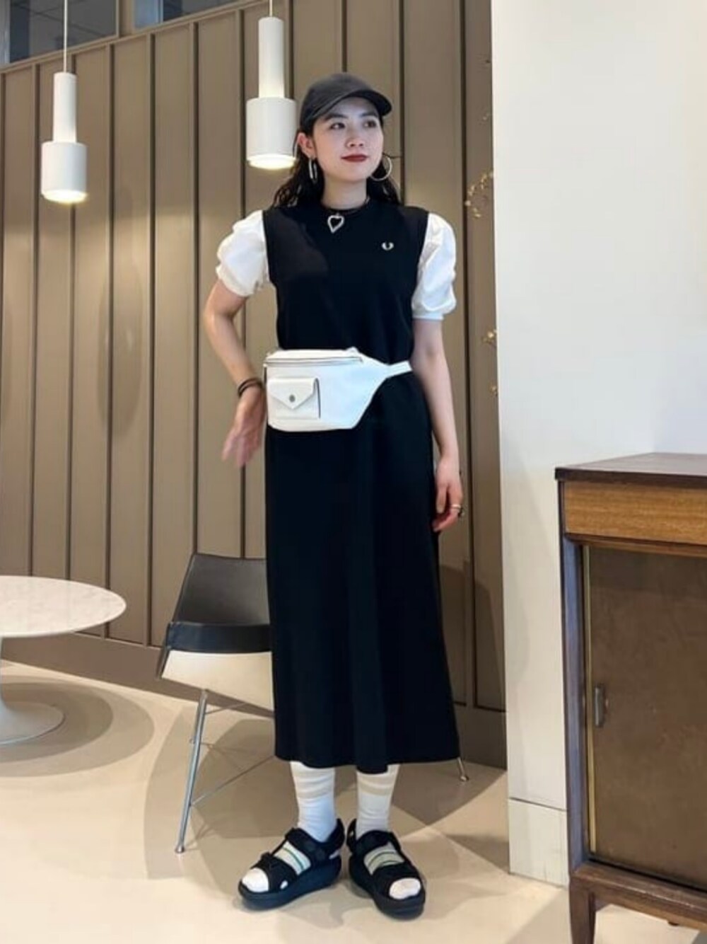 <FRED PERRY>別注ノースリーブワンピースは程よくハリのある鹿子生地なので、ボディラインを拾いすぎず、まっすぐ綺麗に落ちてくれる為スタイルアップも叶います! 一枚でももちろん、白のアイテムを挿すと夏らしさが出ますよ〜! ウエストバッグは元々斜めがけ用でベルト穴が足りてませんが、ウエストに巻きたかったため、ベルトのようにぐるっと巻きつけて落ちないようにしています!(笑) ビームス 横浜 東口 / ゴメス
