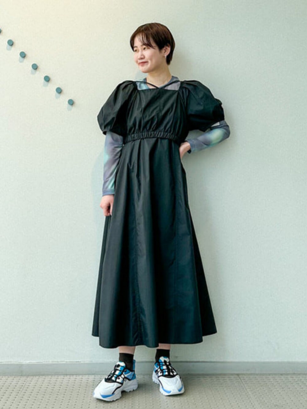 <Ray BEAMS>のワンピースをカジュアルにスタイリング☆ 先日発売された<PUMA>の別注オーキッドサンダルが履きたかったので、インナーもシューズにカラーを合わせました! ビームス 名古屋 / 鎌足 花