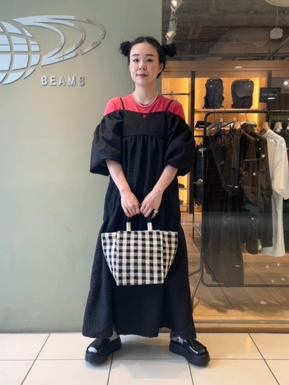 【甘めワンピも自分らしくカジュアルダウンさせよう!の巻】皆様こんにちは、溝口です。先日入荷したこちらのワンピース、スタッフのスタイリング投稿を見ても可愛く、お客様が着てるのを見てももちろん可愛く、店頭で気になってるお客様には全力でおすすめをしているのですが。いかんせん私の体型だと、可愛いアノ人!の様にならない‥(T_T)骨格が違いますからね、仕方ないのです。でもやっぱり可愛いから着てみたい!という訳で、大好きな古着のTシャツをインして露出を減らし、ソックスに厚底サンダルで高さを出して着てみました。前髪がパヤパヤなのと、平らな後頭部は見逃して下さい。パフスリーブとかフリルとかジャカードとか、やっぱりいくつになっても可愛いなぁと思いますが、丸っ切り憧れの誰か!みたいなコーディネートが似合わない時は、自分らしく着られるまで色々試してみるとしっくりきて良いですね♡というわけでこちらのワンピース、本当に可愛くておすすめです。(真剣) ビームス 町田 / 溝口 慶