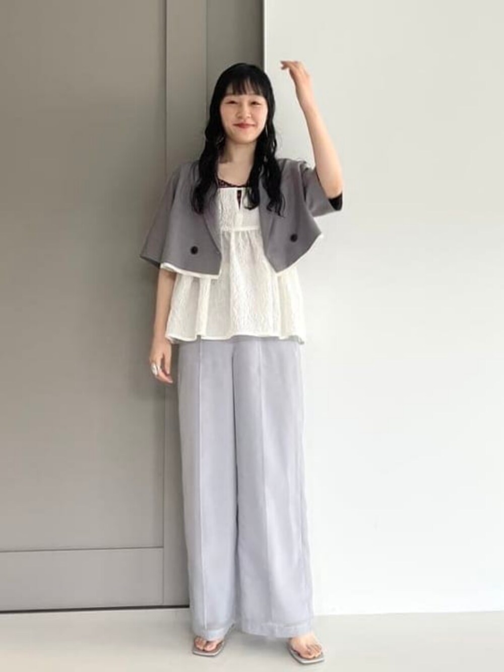 【予約】今季気になる、オールグレーコーデ!ボトムスがシアーなのと、ジャケットがクロップド丈なのでスタイルが良く見えますよ! Ray BEAMS / hazuki