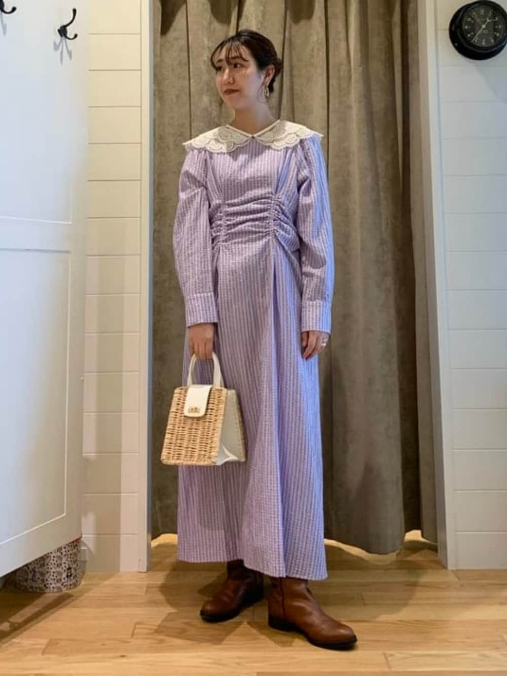 Ray BEAMS(BEAMS WOMEN)のワンピース「Ray BEAMS / チェック バック レースアップ ワンピース」を使ったコーディネート