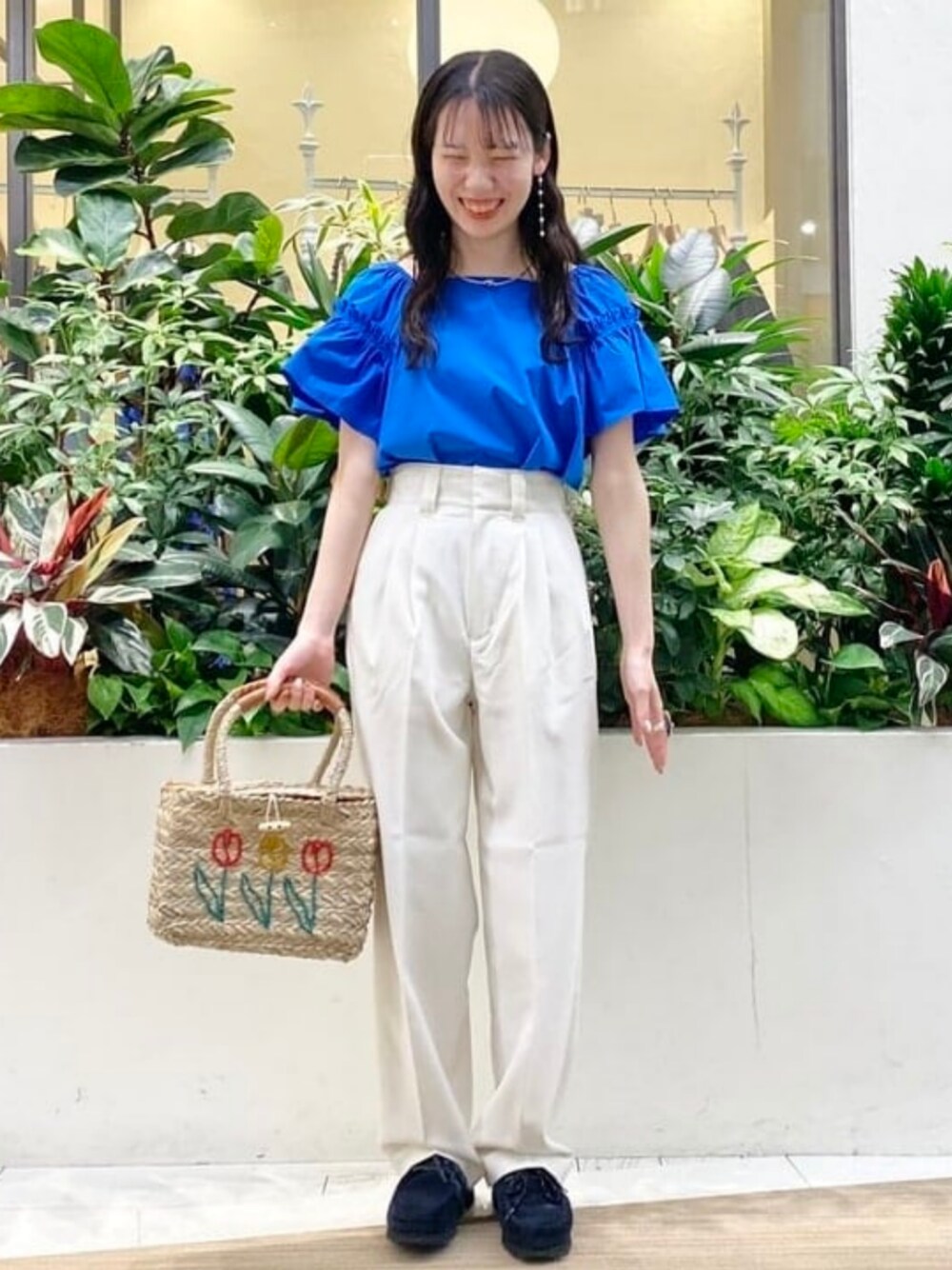 〝155センチ〟【new arrival★】FARAHの別注パンツを軸にスタイリングを組みました!予約時から気になっていたブルーのブラウスと合わせて涼し気のあるコーデに♥365日毎日付けているmy ring たちもご一緒にご紹介いたします!ぜひチェックしてみてください!! ビームス ららぽーとEXPOCITY / がわ ななみ
