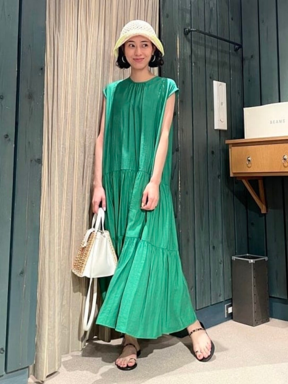 夏の遠出にオススメスタイル☆ワンピースは薄手で涼しいのですが、ペチスカートが付いているので透け感気にせず着ていただけます!グリーンカラーが鮮やかで夏の日差しに映えますね♡「♡+お気に入り」このマークを押して頂くと気になった商品が見返し易くなります!是非ご活用下さい! ビームス 銀座 / えみり