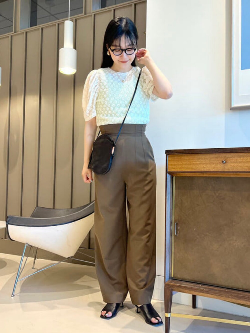 Ray BEAMS(BEAMS WOMEN)のTシャツ/カットソー「Ray BEAMS / フラワー レース ギャザー スリーブ Tシャツ」を使ったコーディネート