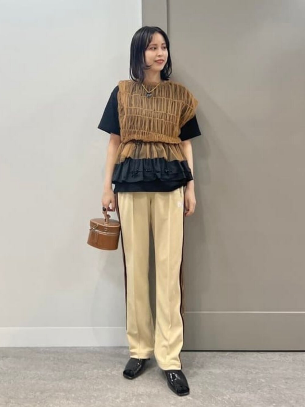 <Needles>トラックパンツはビームス ジャパン限定で既に発売しているもの、サンプルを着用してみました!インラインのトラックパンツよりも柔らかく軽い生地で新鮮です。また、カラーも絶妙なはちみつ色でいい、、、笑トップスは腰回りのフリル重ねがお気に入り!! ビームス ウィメン 原宿 / Aoi