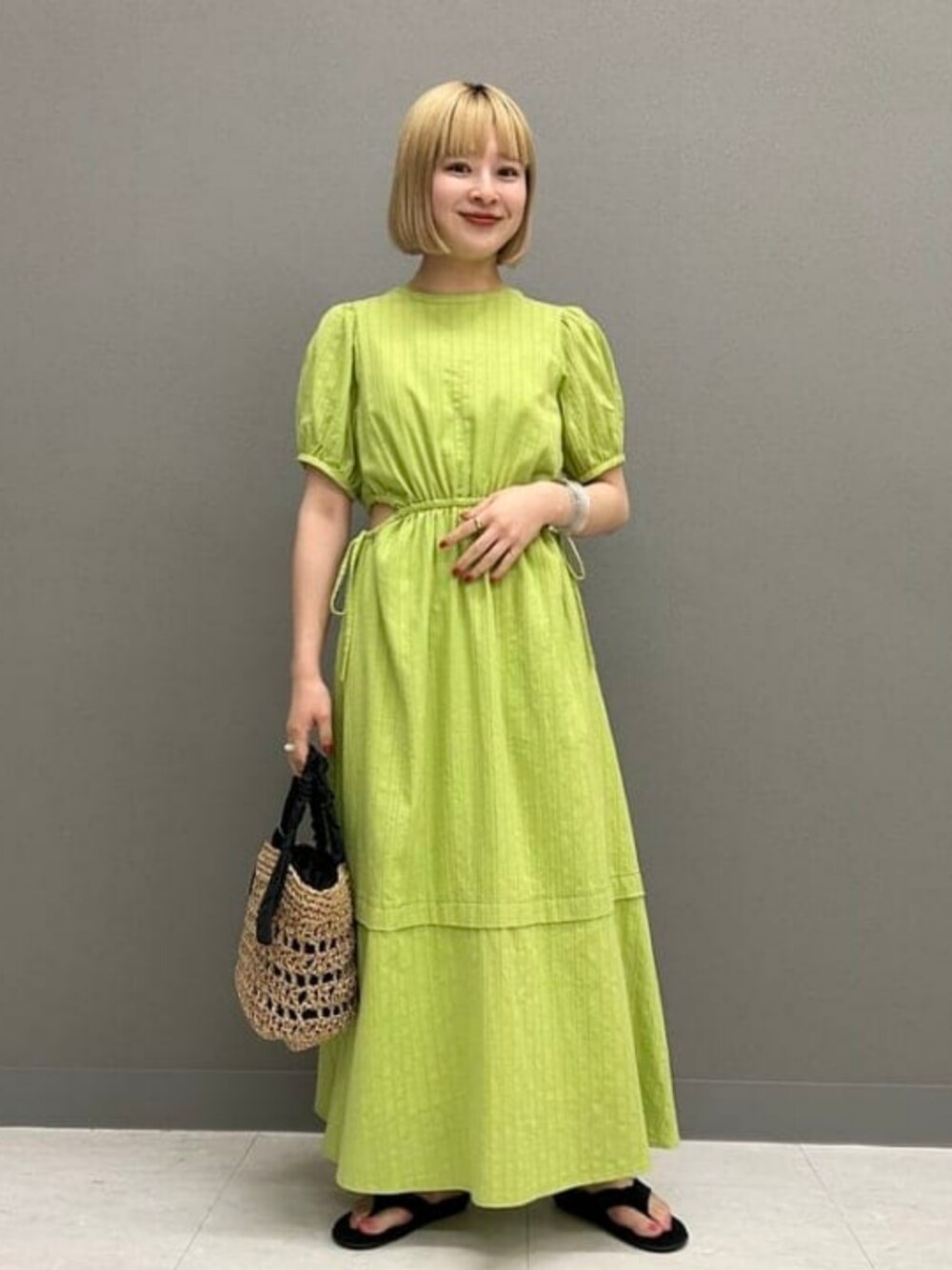 【夏はすぐそこ‼︎】最近とっても暑くなってきましたね、、、。服を考えるのも億劫になってしまう時に楽なのがワンピースですよね!気分もアガるライムグリーンのこちらのワンピースは袖のパフスリーブとお腹のチラッと肌見せできる所がポイントです!また夏といえばのこちらのバッグ!容量もたっぷりなので500mlのペットボトルも入ります◎足元は〈ISLAND SLIPPER〉のビーサンで涼しく仕上げました〜♡+お気に入りに登録して頂くと後から簡単に見返せます! ビームス ストリート 横浜 / ナカノ アイ