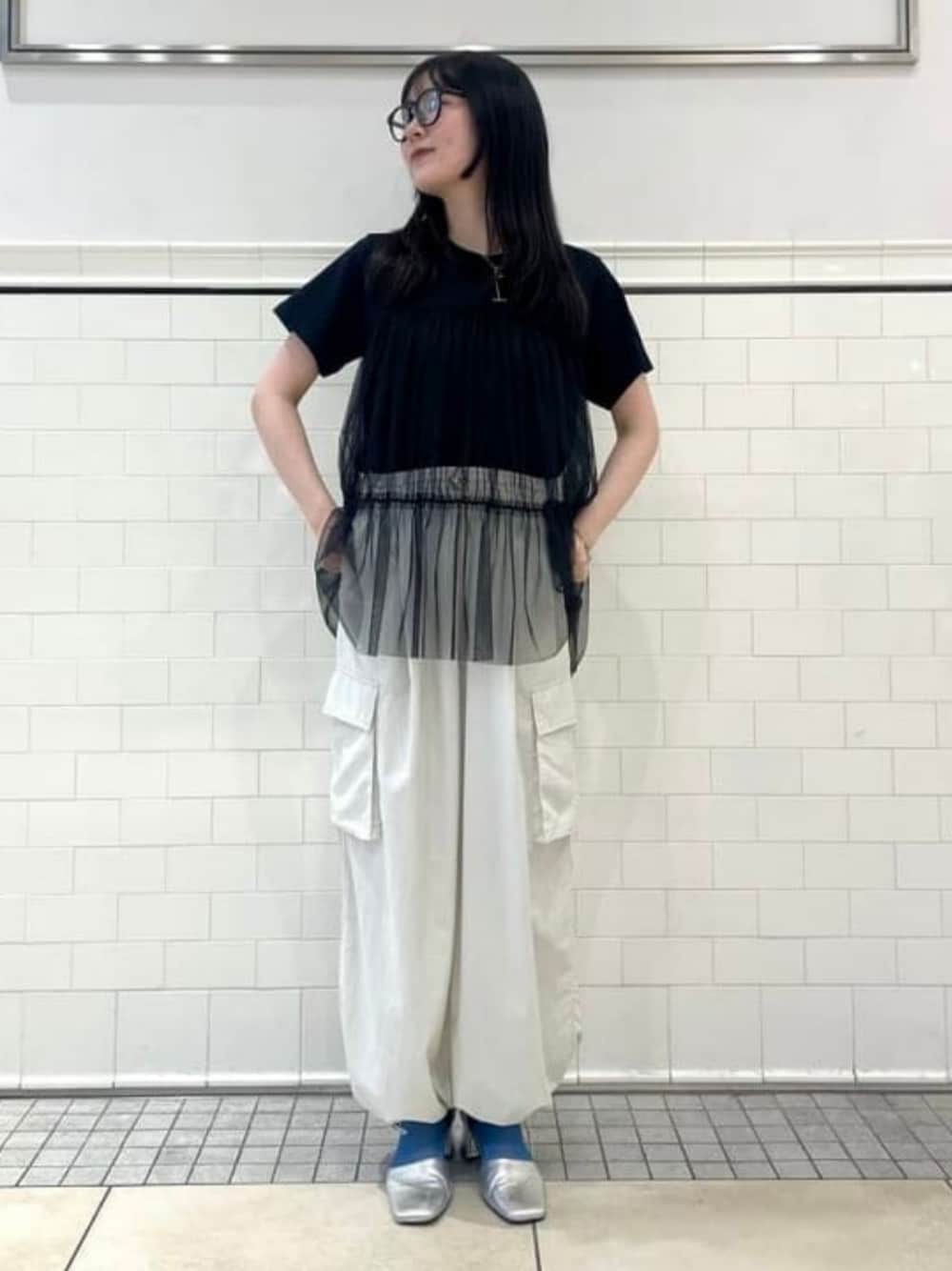 【おしゃれ上級者になれるチュールTシャツ!】一枚着るだけでレイヤードしてるように見えちゃう万能チュールTシャツとってもおすすめです!夏に重ね着は暑くて嫌だな…という方でもさらっと着こなせます◎カーゴパンツと合わせましたが、カジュアルになりすぎないようにお気に入りのパンプスを履いてます( ◠‿◠ )トップスサイズフリー、カーゴパンツはサイズ0です! ビームス 武蔵小杉 / rina