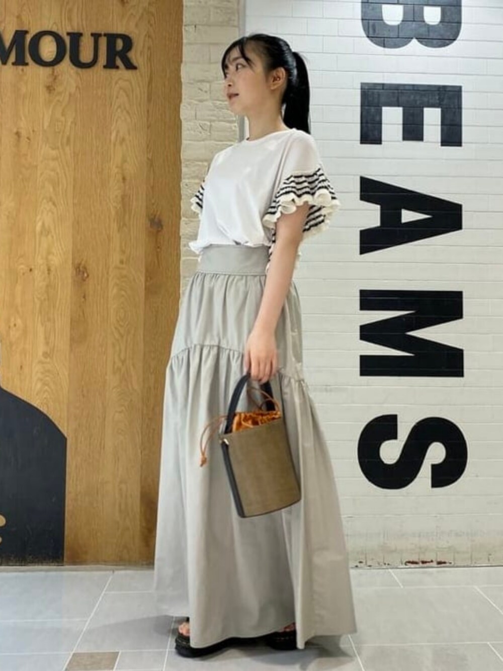 【着やすくて可愛いTシャツ!】 <Ray BEAMS>のニットフリルスリーブTシャツは、袖のみニット素材で出来ているので、夏は涼しくて着やすいです!一枚で可愛くなるのでおすすめです! バッグはセールになっているので、是非チェックしてみて下さい! ビームス 新宿 / 横濱 莉々香