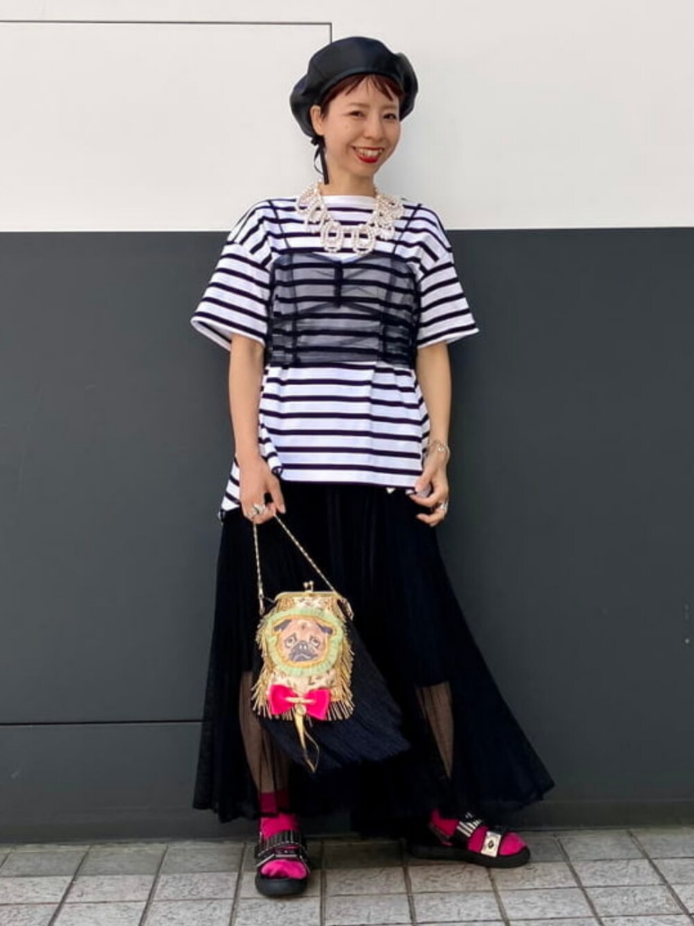 【トクコレ2023春夏】フレアに広がるトップスに、ビスチェをプラス!メリハリがつくので、身長149cmの私でもスカートと合わせてかわいいバランスになりました。小物はNEWアイテム!にやり。と笑ったようなパグが愛おしいです。 ビームス 広島 / 幸子
