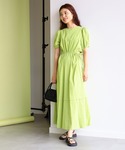 【夏の主役ワンピース♡】爽やかで華やかなグリーンのワンピースは、可愛らしい雰囲気にサイドのカットアウトがオトナな一着。肌が出る面積は、リボンの締め具合で調節が効きます♪丈はフルレングスなので、やや長めのデザイン。ストライプ見えする素材感なので、縦のラインが強調されてスタイルアップ効果もアリ♡付襟にチュールで思いっきりガーリーにスタイリングしました! ビームス みなとみらい / デグチ アツミ