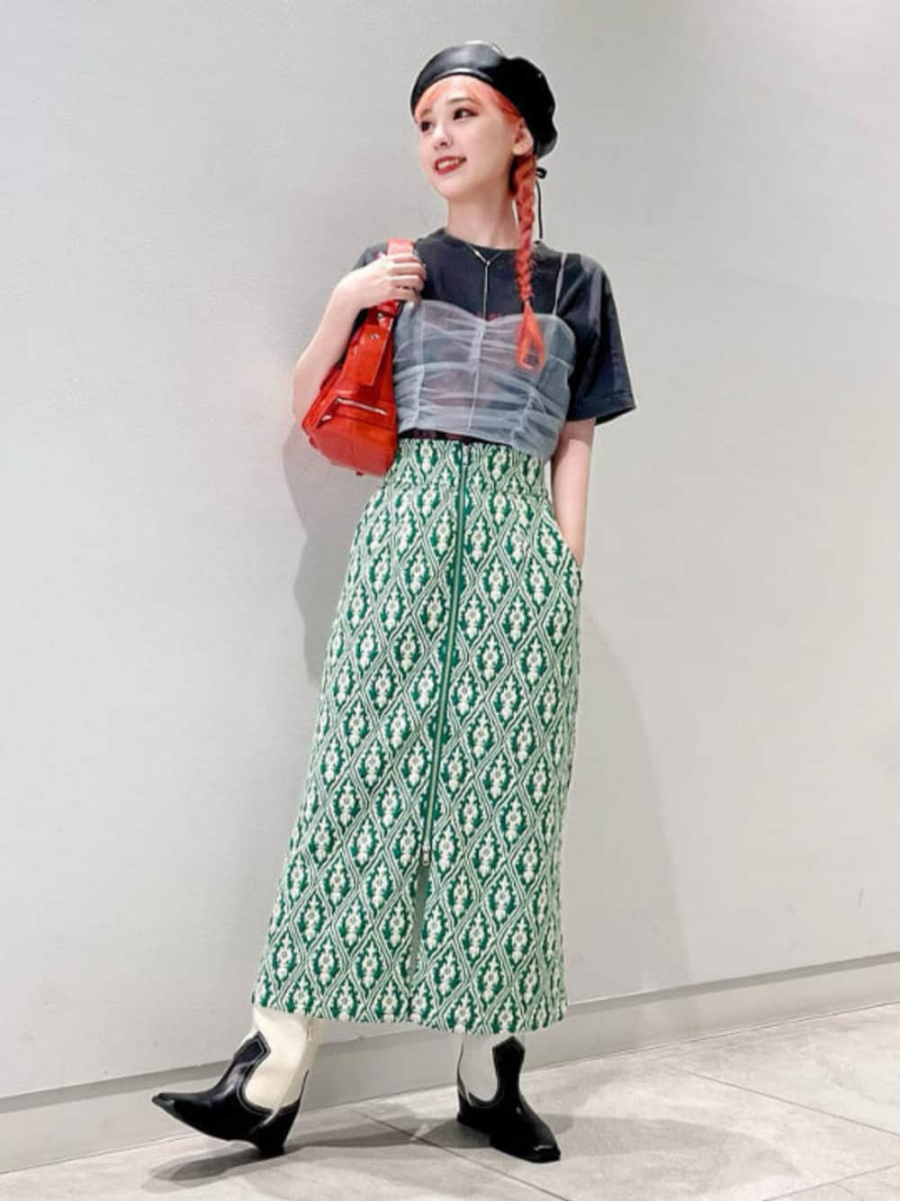 【AWコーデ】 気になるAWアイテム詰め合わせてみました!主役はグリーンのジャカードスカート! ハイウエストなのでスタイルアップして見せてくれます◎チラっと覗くリアルバイしたウエスタンブーツとの組み合わせもお気に入りポイントです♪ AWアイテム続々と入荷中ですので是非チェックしてみて下さい〜♪ ビームス 宮崎 / 前田 奈都希