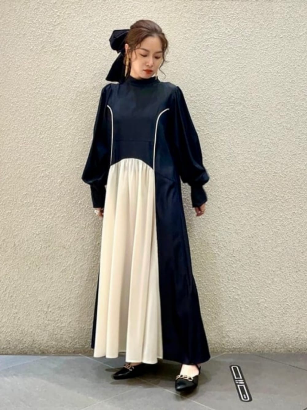 【モノトーンで纏めました◎】昨日ローンチした<RBS>のワンピースを主役にモノトーンコーディネートを組みました。パイピングが施されたワンピースは一枚でも映えるデザイン!袖もバルーンシルエットなので、程よいボリューム感を楽しめますよ♪ちなみにFREEサイズですが、身長155cmで少しヒールのあるシューズと合わせると丁度いい丈感です!より女性らしいコーディネートを組みたかったので、<FUMIE= TANAKA>のビッグ リボンをヘアアレンジした部分にプラスしたのがポイントです!パーティシーンにもオススメなコーディネートですよ◎ネット取り置き・取り寄せサービスで店舗でもご覧頂けます。是非ご活用くださいませ! ビームス 新宿 / カタヤマ アヤ