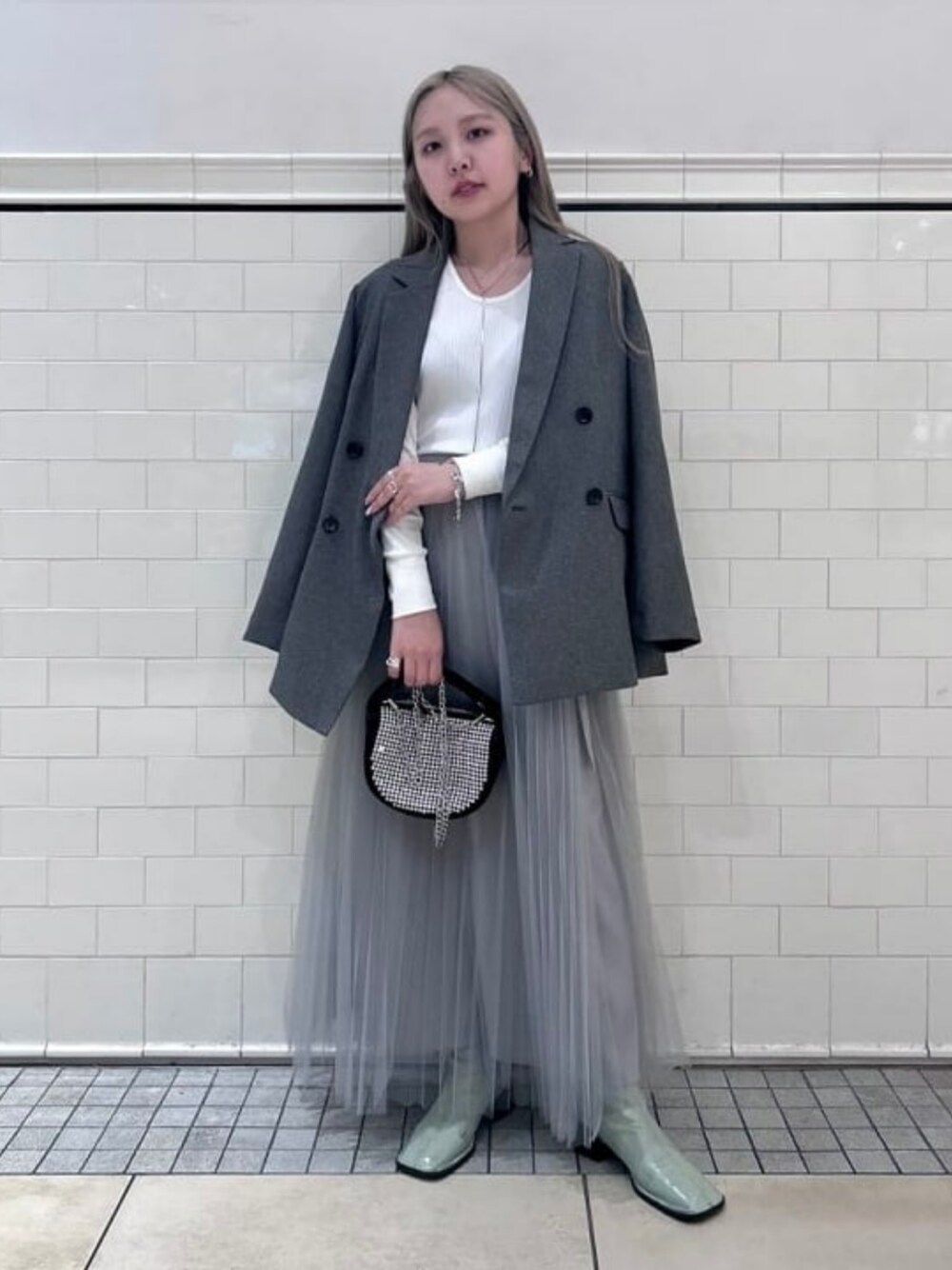 【ジャケットスタイル♡】1枚あるとオンオフ使えて重宝するシンプルなジャケット。152cmでサイズ0を着用しましたが肩幅がすっきりとしているのですっきりと着られます♡チュールスカートは2枚重ねのデザインで立体感が素敵です。 Ray BEAMS / haru