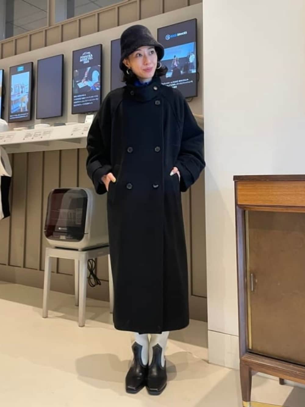スタンドカラーを閉じてきても、開けてきてもサマになるコート!ハットとウエスタンブーツでアクセントをプラスしました。 Ray BEAMS / えみり