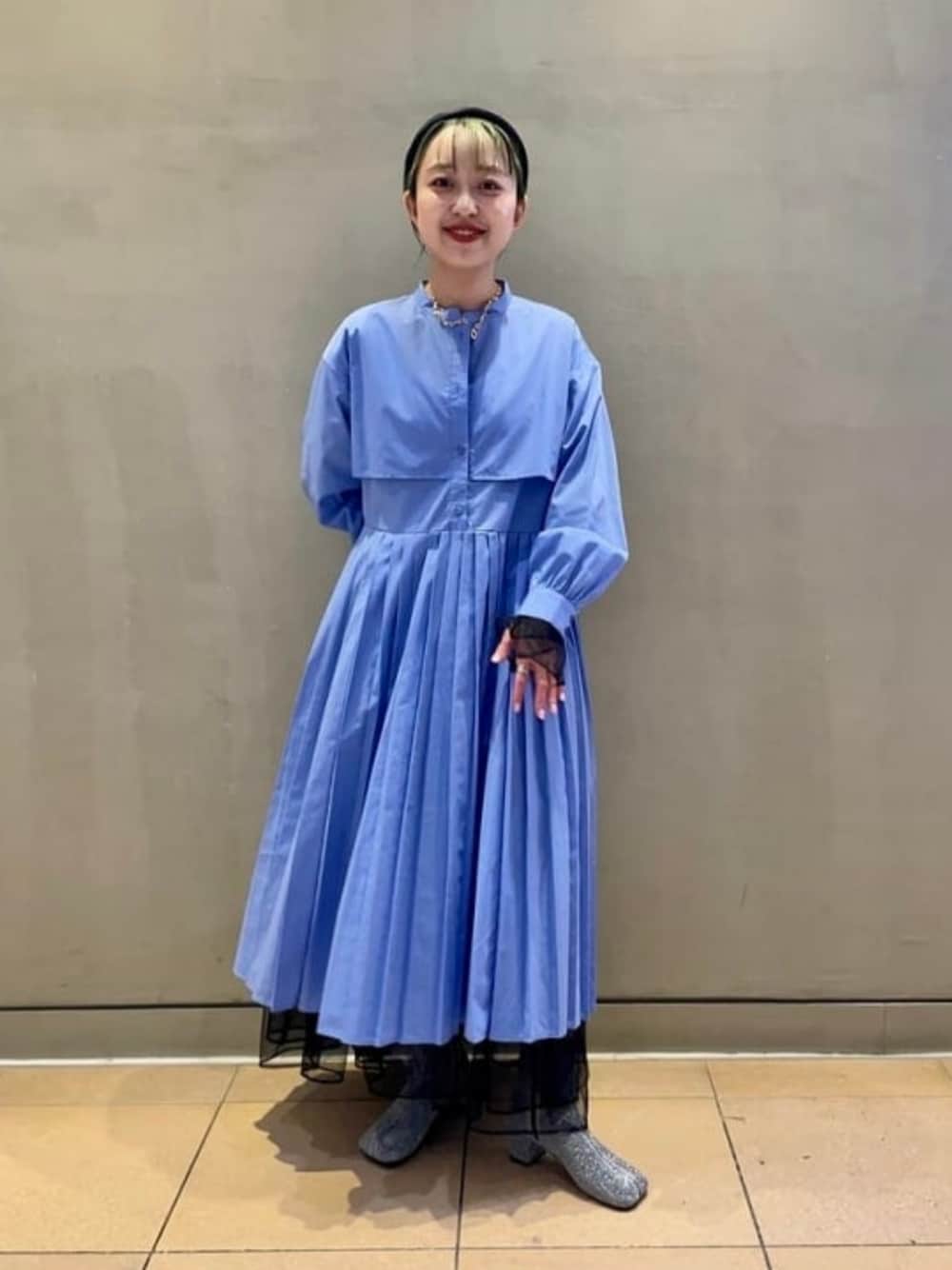 【ワンピースonワンピース】ヨーク切り替えが上の方にあるのでスタイルアップしてみえる人気のワンピース♬152cmの私でこーんな丈感です。今回は下に着用したシアーチュールのワンピースは、上でも下でもレイヤードスタイルに大活躍するアイテム!!少しチラ見せするだけでお洒落度upして見えますよ⤴︎ Ray BEAMS / カラツ ミナ