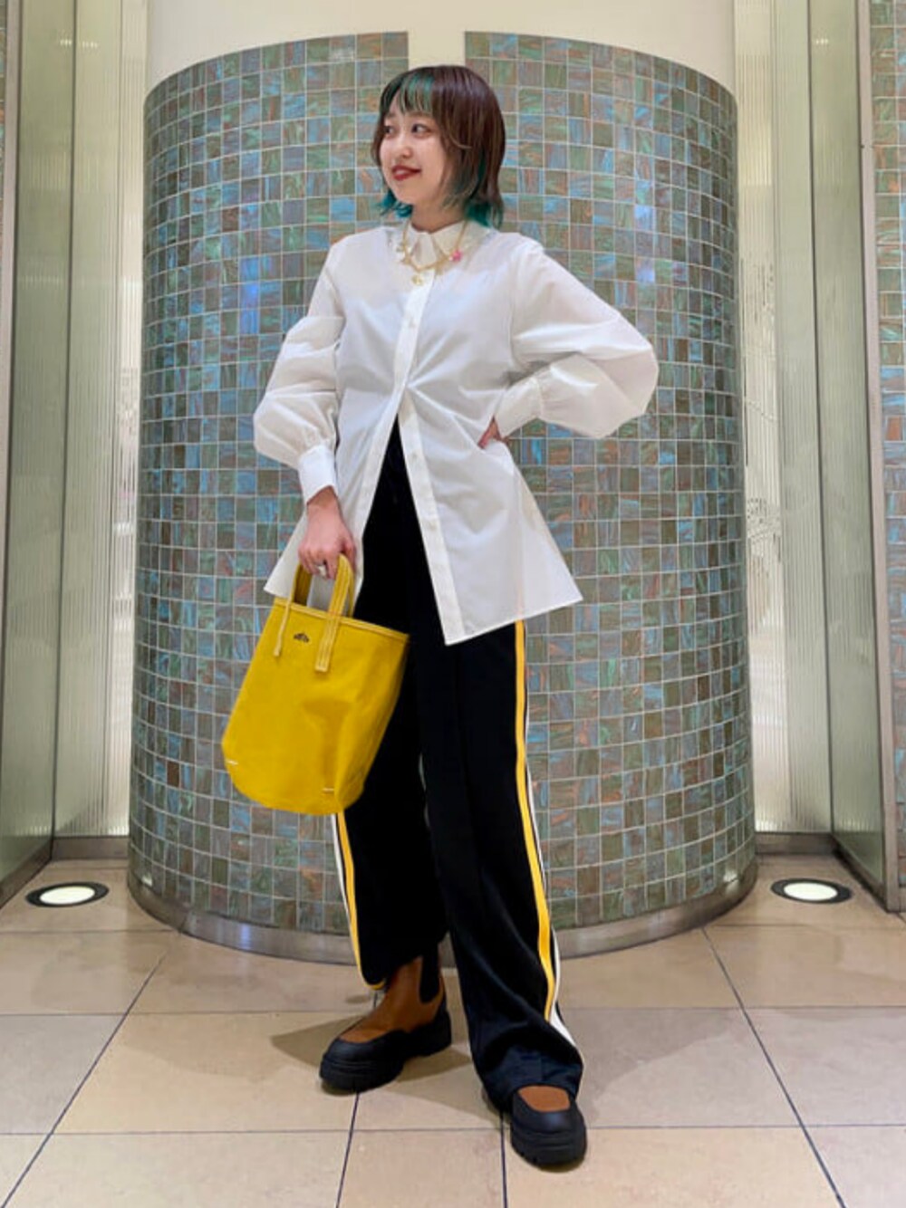 レイヤードせずにバックの編み上げリボンが可愛いデザイン性たっぷりのシャツと、サイドラインジャージでシンプルに。シンプルなときこそシルエットにはこだわりたい!〈REMME〉の厚底ブーツはこの秋冬大活躍の予感です‼︎☺︎ ビームス 天王寺 / カラツ ミナ