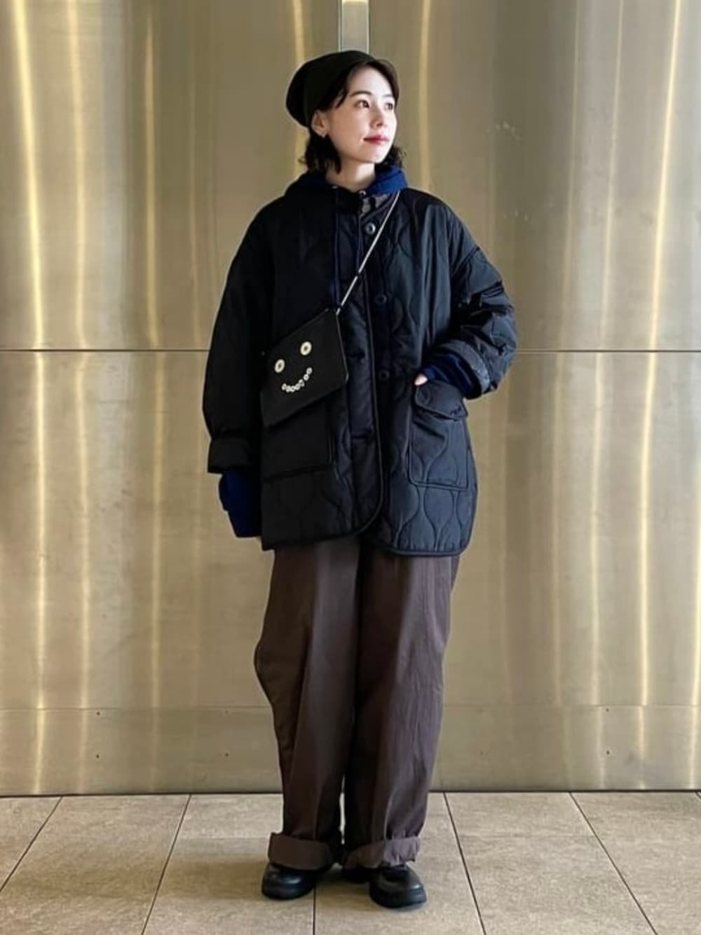 【いつものスタイルに遊び心を】デイリー使いしやすい〈Ray BEAMS〉のキルティングブルゾン。サイズは0を着用しています。かなりゆとりあるデザインなので、いつもと同じサイズもしくは小さめがお勧めです。〈COXCOMB〉の新作サコッシュはキュートなスマイルが。スタイリングのポイントになりますね。 ビームス ニューズ / 石原 真由
