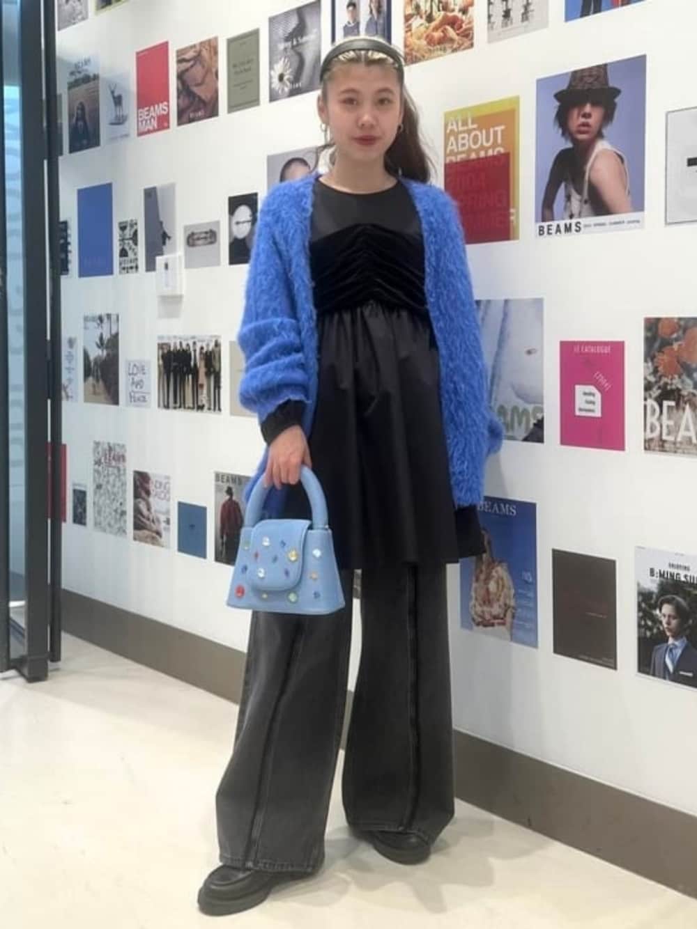【綺麗目なワンピースをカジュアルにまとめたい私】キラキラ装飾のデザイン性のあるワンピースをカーディガンとデニムでカジュアルダウンさせてスタイリングいたしました♡♡着用しているワンピースはこのように普段使いももちろん、一枚で着用し、タイツなどを合わせればフォーマルな装いでも着用できますよ〜♡♡合わせて着用しているカーディガンも毛足が長いトレンド感のあるデザインとポップなカラーが魅力です♡肌寒いこの時期におすすめアイテムです!ゆったりサイズで中に着込めるのも魅力です♡ ビームス 立川 / まあや