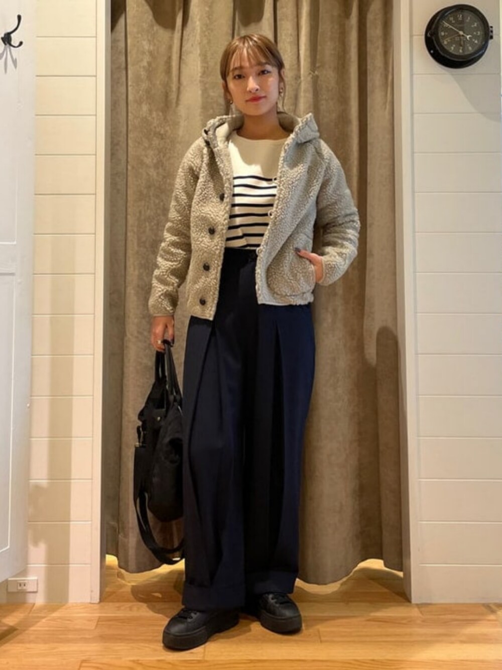 洗えるこちらのボアコートを身長163cmの松本が着用しました!意外とサイズがぴったりしているので、サイズ感迷ったら大きいサイズをオススメします!★ ビームス 二子玉川 / 松本 佳菜子