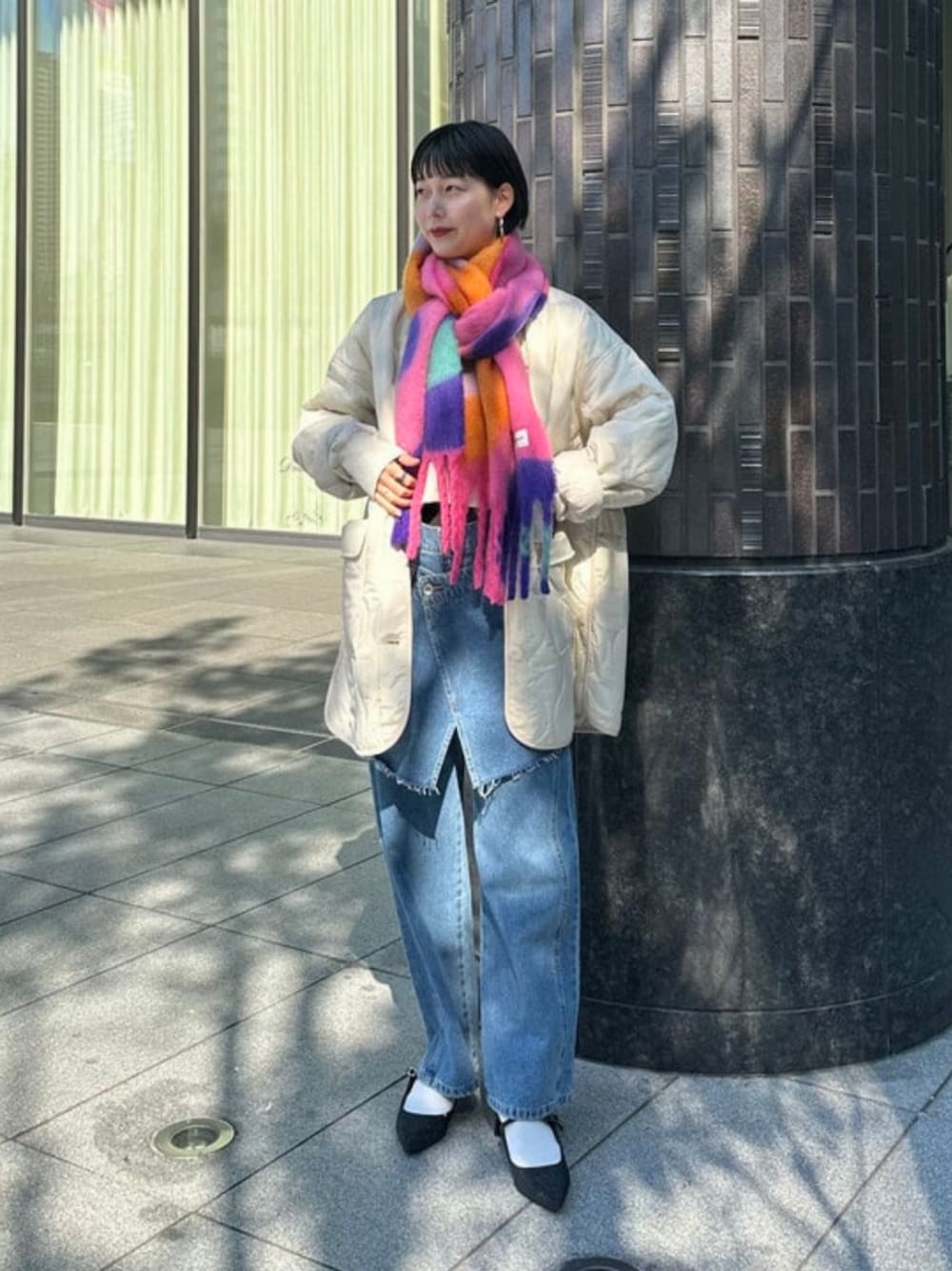 だんだん気温も下がってきましたね^^こちらのマフラーは配色が可愛く、花柄になっているのがポイントです◎ ビームス 梅田 / 齊藤 伊吹