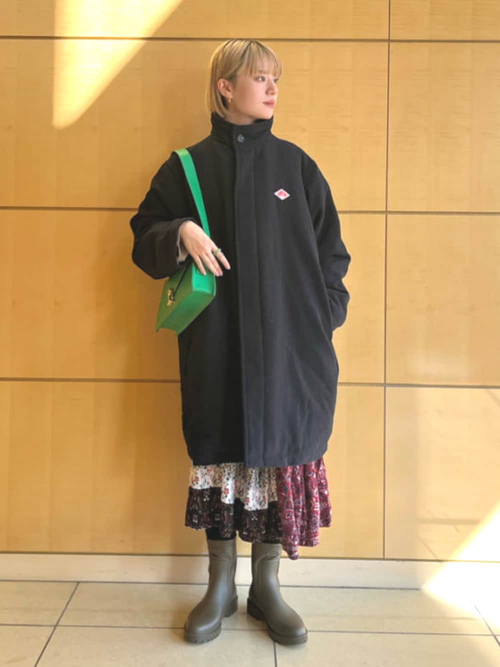【DANTON】好評のDANTON別注シリーズ。こちらのコートはウールコートとインナーダウンが一体化されているのでとにかく暖かいです!!着膨れしちゃうかな〜、、と思いつつ着てみたら適度にボリュームが抑えられていて意外にもスッキリして見えました◎ウールのコートに古着のスカートの組み合わせがレトロで好みです。 ビームス 新丸の内 / Hazuki