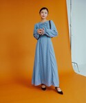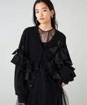 立体的なジャガード生地ですが、着膨れせずさらっと着れます!胸元のギャザーデザインと肌がチラッと見えるのが女性らしいです。リボンがたっぷりついたカーディガンと合わせフェミニンなスタイリングにしてみました。 レイ ビームス 新宿 / おミツ