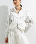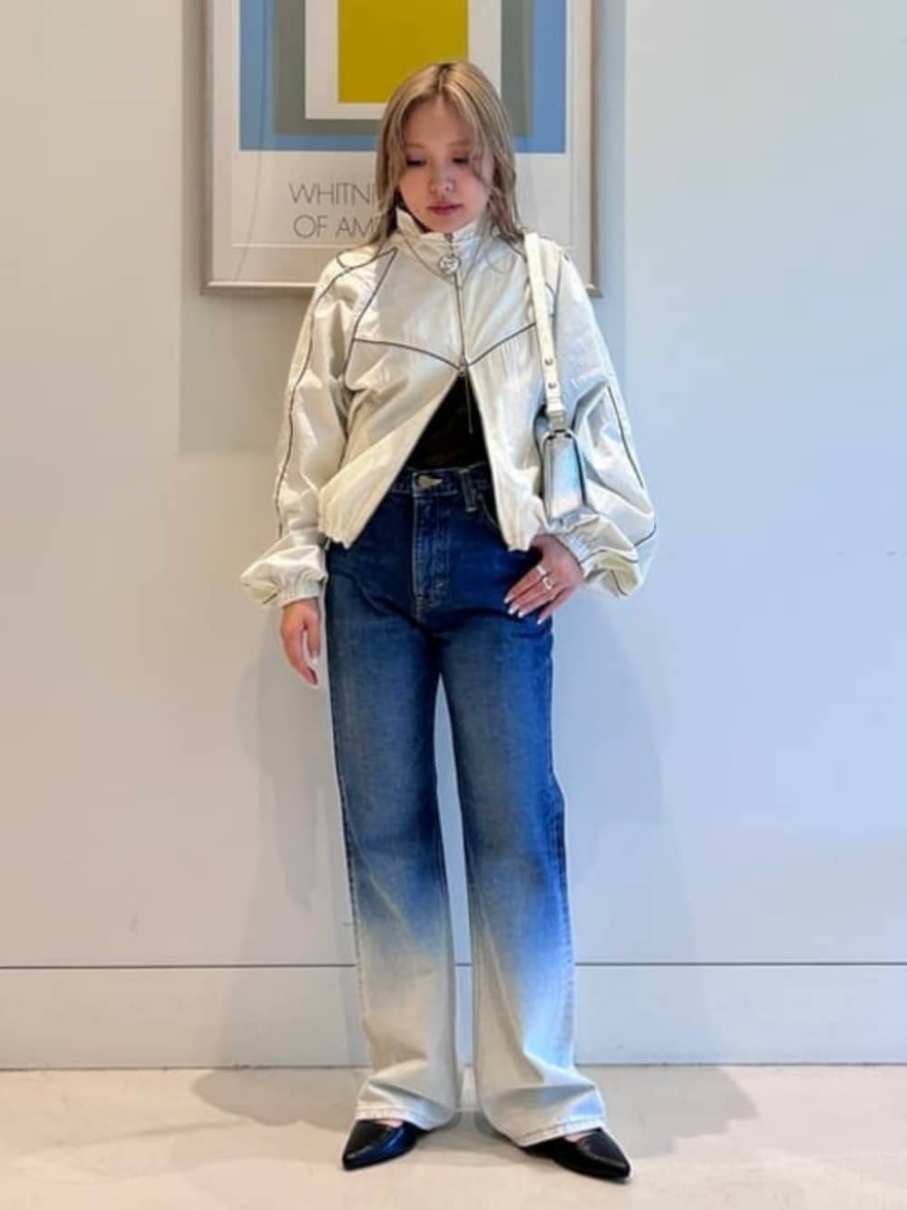 【予約アイテム】トラックジャケットが主役のsport mixスタイル。ダブルジップなので下からシアーのトップスを覗かせてヘルシーに肌見せしてみました♡〈Lee〉のフレアデニムは膝位置が高く脚が綺麗に見えます!152cm/Sサイズを着用しましたが、ウエスト、レングス共にゆとりがあったので150cm代前半の方はXSでも良さそうです。 Ray BEAMS / haru