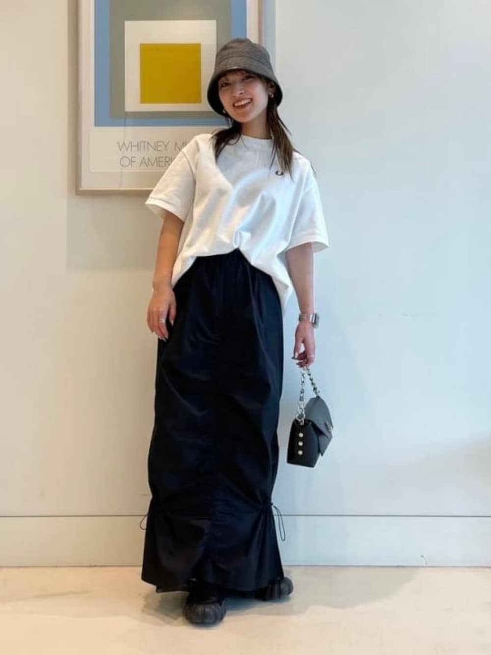 【FRED PERRY】去年大人気だったFRED PERRYのTシャツ!♡今年も予約開始しました!前が短く後ろが長いシルエットで横幅広めです!すっかりけどゆったり着ることができます◎!生地は綿100%でしっかりとしているので、よれにくく洗濯など扱いやすい一枚です。 Ray BEAMS / 松本 佳菜子