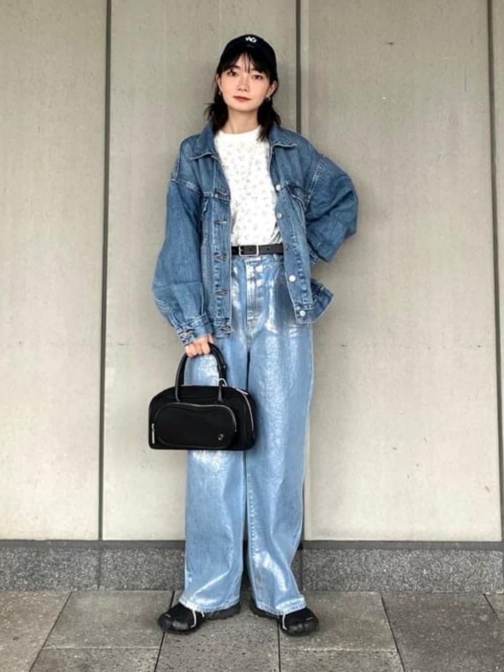 【デニムセットアップ~】 <LEVI’S>のデニムジャケットとに箔プリントデニムパンツ合わせました〜!こちらのパンツ、キラキラしているのでアクセントになりそうですね♪私はサイズ1を着用しております! ビームス 東京スカイツリータウン / むりょ
