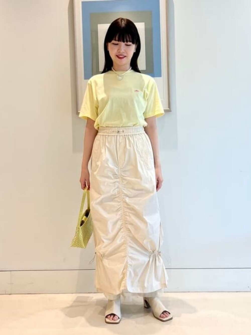 \24SS予約スタート/春を先取りしたイエローカラーコーデです!Tシャツがカジュアルなので、スカートとキラキラビジューバッグで女性らしくまとめてみました♡ Ray BEAMS / 翔子