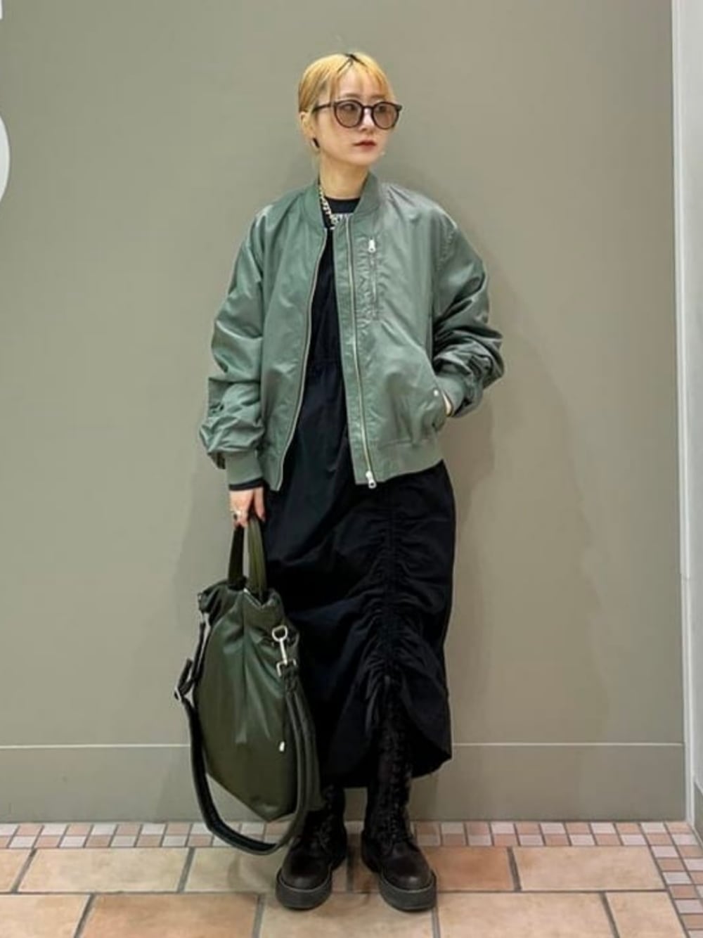 ミリタリーギャザーたっぷりコーデ!◎ 最近入荷したトートバッグをメインにコーディネートを組みました。巾着袋の様にもなるバックは肩掛けも手持ちも出来る万能アイテム。カーキカラーに合わせてMA-1をチョイスしました。RBSのワンピースは裾のギャザーを調節出来るので、今回は最大までたっぷり寄せてボリューム感をプラスしました。カジュアルながらもディテールでポイントを加えたコーディネートです。 ビームス 札幌ステラプレイス / 藤澤 萌香