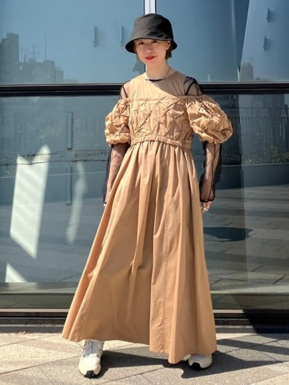 【春のお出かけコーデ】 【身長157cm.骨格ナチュラル.サイズ1着用】 カットアウトされたオフショルダーが特徴的なロマンティックなワンピース♡ 肌見せに抵抗あるかたは、シアー素材のものをインナーにしていただくのがおすすめですよ♪ ビームス 東京スカイツリータウン / うに