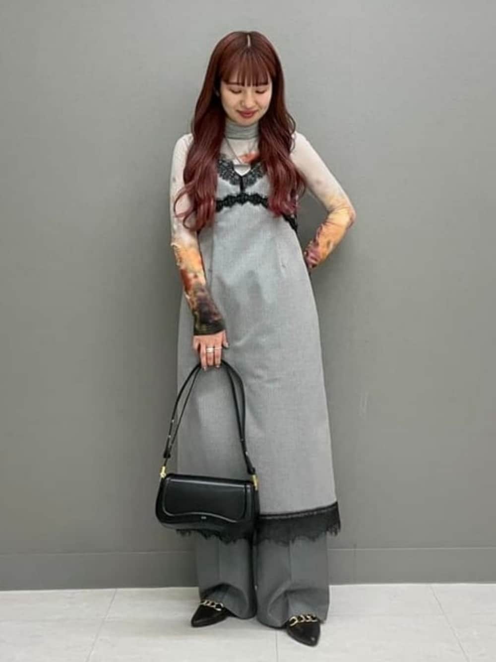 【セットアップにもなります!153cm/size0】ワンピースはふくらはぎくらいの丈感です!肩紐の長さが調節可能なので好きな着丈に合わせて着用できますよ〜!少し肉厚な生地感と裏地もついているため、1枚での着用も可能です◎私はレイヤースタイルが好きなので、同系色のパンツと合わせて着用しました!黒のレースに合わせてバックやシューズも黒で統一させたのが本日のポイントです〜!バックは2wayでご使用可能です◎肩にも掛けられる長さなので使いやすくとても便利ですよ〜!是非! ビームス ストリート 横浜 / ヒカリ