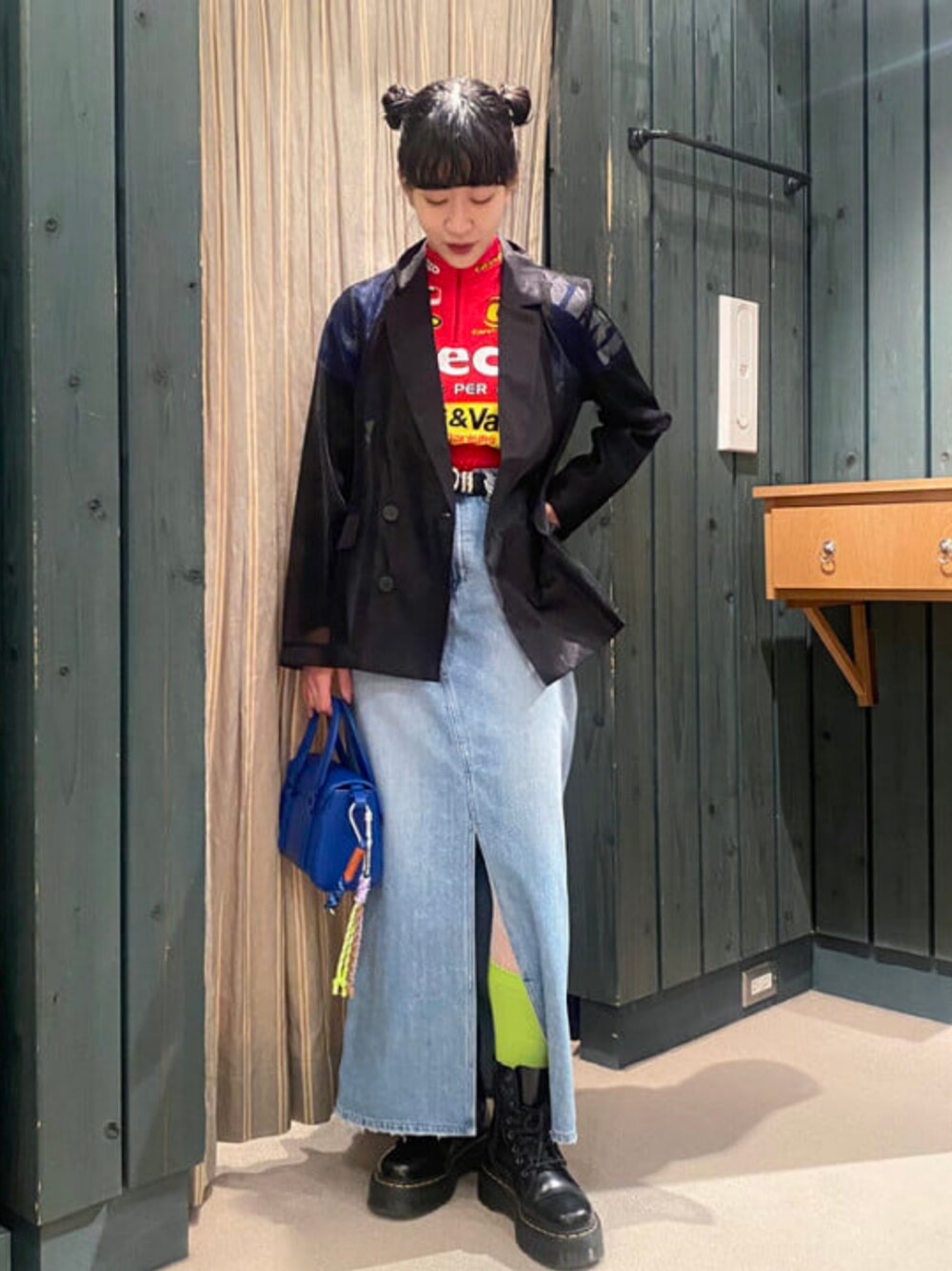 【スポーツミックス!】入荷を楽しみにしていた<77 circa>のサイクリングトップスをメインにスタイリングを組みました ♡此方アソート商品になりますので一つひとつデザインが異なります(﹡ˆoˆ﹡)!是非お気に入りの一着を見つけて下さい ☆デニムスカートは大胆にフロント部分にスリットが入っていますのでソックスをチラッと見せるのがオススメです^^ ビームス 銀座 / マツド ユメカ