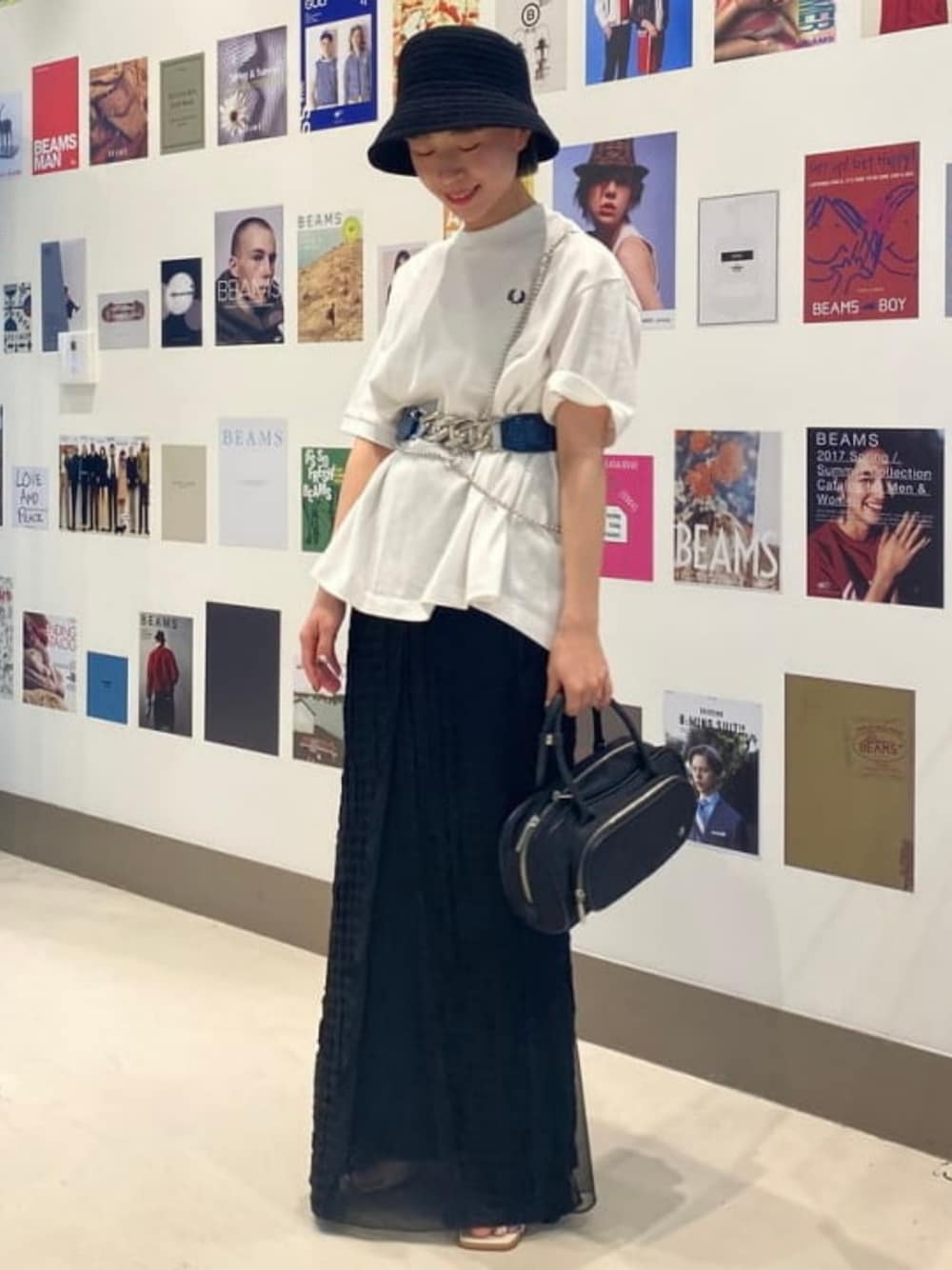 【24SS 予約でお得♡】 【身長157cm.24cm.骨格ナチュラル】 全体的にモノトーンにまとめると、スポーティーなアイテムでもシックにまとまります☺︎ トップスの〈FRED PERRY〉×〈Ray BEAMS〉はさらっとした着心地でAラインが体型を綺麗にみせてくれます。 一推しなチェーンネックレスは様々なスタイルでお楽しみいただけるアイテム。 今回は体にベルトのように巻きつけました♡ Ray BEAMS / うに