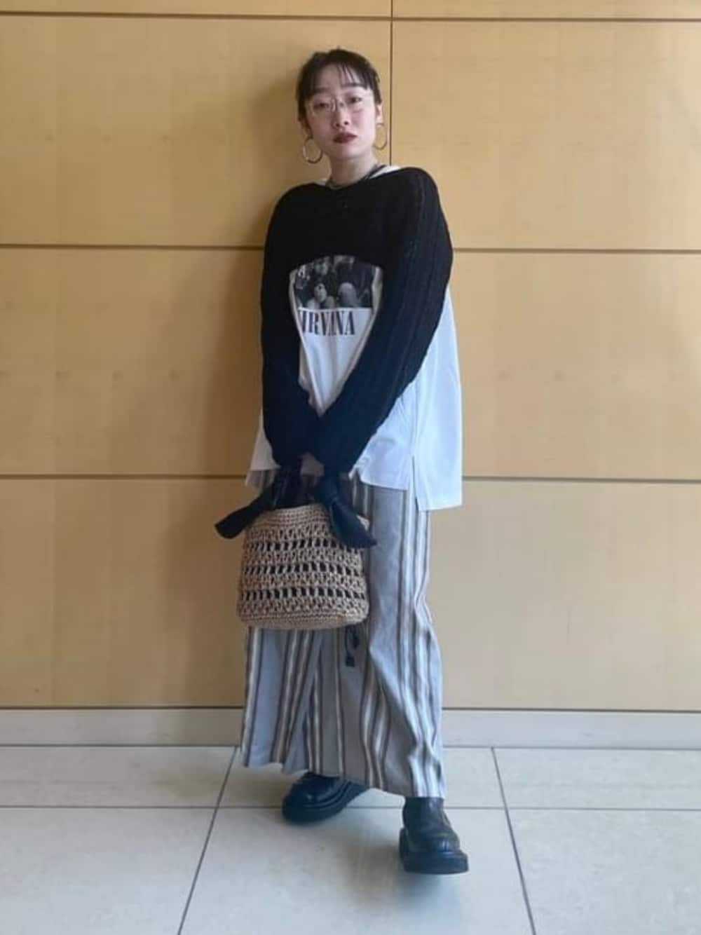 【楽~に生きたい日は】ルーズが1番。ルーズのバランスはパッと目に入るポイントを顔周りに作ることく(^。^ )>今日の場合は、お団子・ネックレス・アームボレロ!色がぼやけそうだったので黒を選びました。ストライプスカートは巻きスカートのようですが、フェイクです。後ろジップのシンプルなスカート!巻きスカートのデザインが素敵ですよね。 ビームス 新丸の内 / ハルキ モモナ