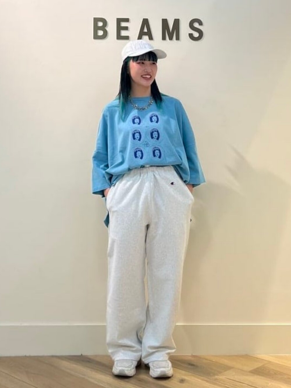 Ray BEAMS(BEAMS WOMEN)のスウェットパンツ「Champion × Ray BEAMS / 別注 リバースウィーブ(R) パンツ」を使ったコーディネート